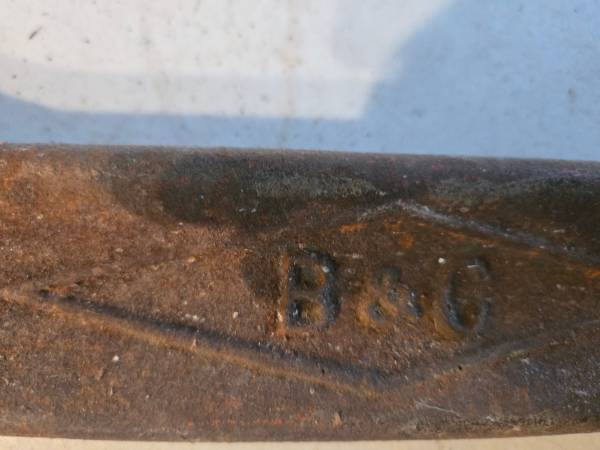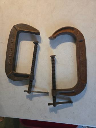 2 Large Antique B&C C Clamps. 8" is marked "148", and "Maleable Iron". 10" is marked "310" and "Ductile Iron" Price is for both. Old but in good workable condition.