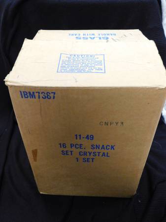 16 pc Crystal Snack set. 8 cups with 8 matching plates. Cross Posted