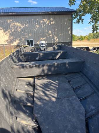 14ft aluminum Starcraft boat and 9.9 evinrude short shaft motor Only used for hunting so no title for the boat. Trailer has new tires and lifetime license.