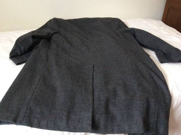 Union made in the USA. 1940's knee-length wool coat with a zip-out removeable liner and a pinstripe satin lining. Size 40? Gentry by Penney's. Nice warm coat. Excellent condition, clean. $35 cash