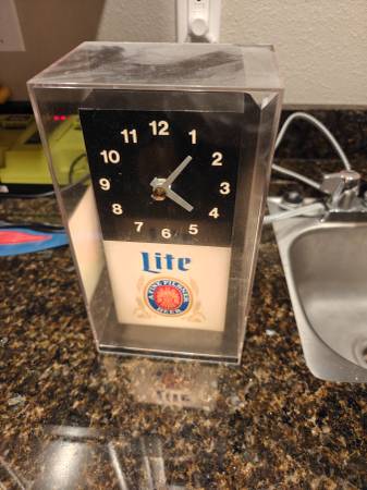 Used Miller Lite analog clock. Has a crack on the back, but still works $50 obo