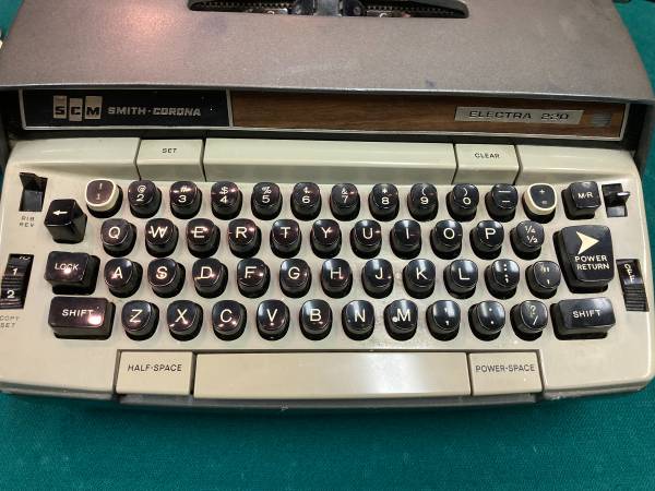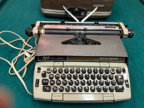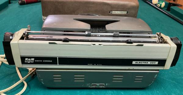 This is a working but vintage Smith Corona Electra 220 typewriter (1970s) that is being sold as is. It needs a new ribbon but types beautifully. This is an electronic typewriter with full keyboard and needs to be plugged in for use. Comes with a sturdy case (no key); no manual. Has some cosmetic imperfections. Cash only.