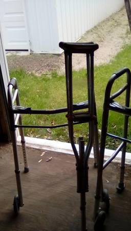 I have 1 walker and a pair of crutches Crutches need pads $5.00 Walkers are 2 wheeled $5.00 each. Cash only Pick up in Elysian,mn
