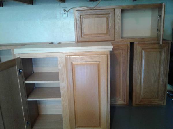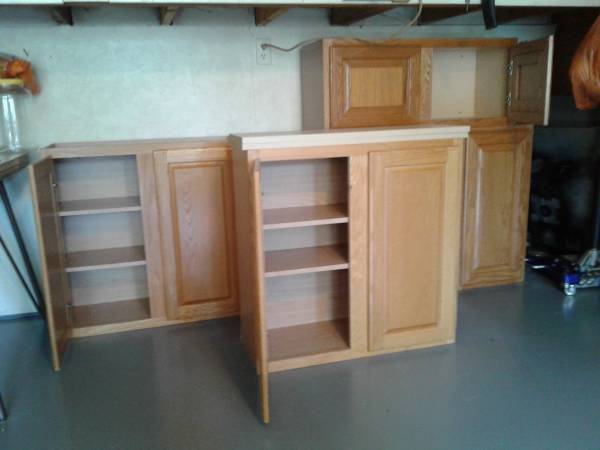 5 like new wall mount Oak kitchen cabinets. Dimensions as follows : Two at 30 tall x 30 Wide x 12 deep, $45 each. One at 15 tall x 36 Wide x 12 deep ,$35 . One at 30 tall x 15 Wide x 12 deep $35. One at30 tall. X 33 wide x 12 deep $45 . Call 719-237-two one eight eight . MORRISTOWN, MN $205