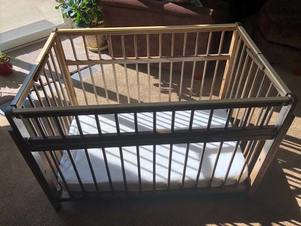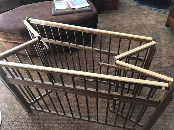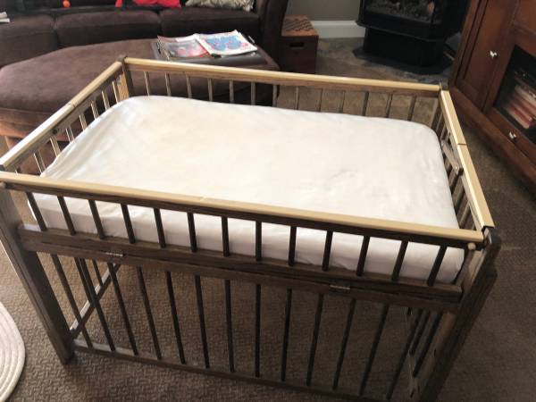 Perfect for two level home so baby can sleep either upstairs or down. Can raise the base mattress up to serve as a changing table. Solid wood. Includes crib sheets.