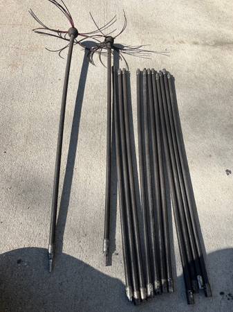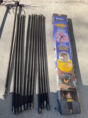 Soot eater chimney brush system. There are two sets that I’m selling for one price. I needed more rod length and just bought a 2nd set. These rock! These attach on your drill and you control it.