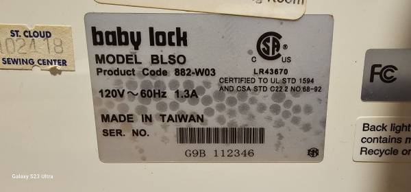 High-end Baby Lock embroidery and sewing machine with extension table and accessories.
