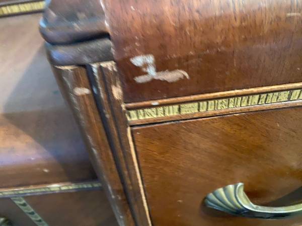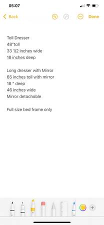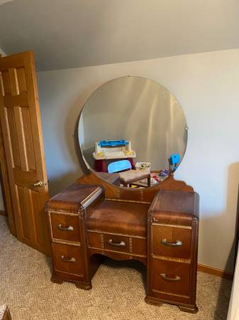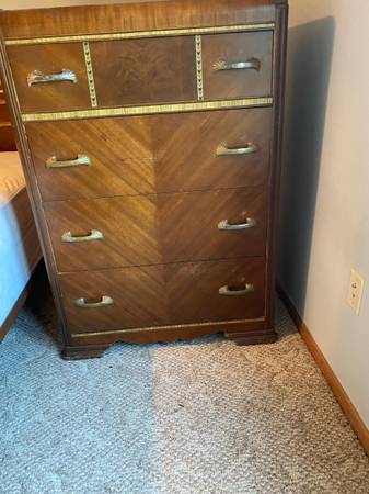 Antique bedroom set of furniture (tall dresser, long dresser, chair and Full bed frame). Mattress and box spring NOT INCLUDED. It is old and well cared for but does have some surface wear which is pictured. 507 seven six six 51six eight call or text.