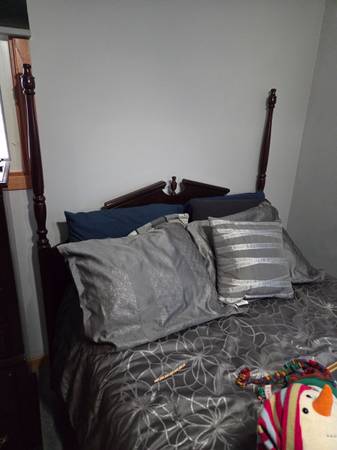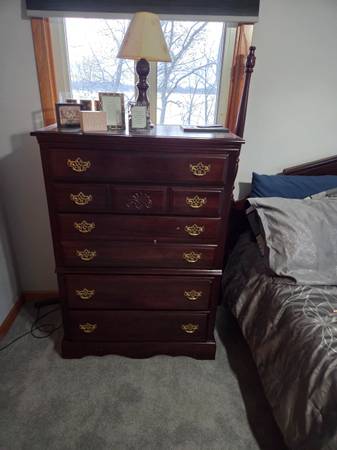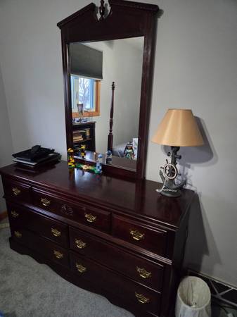 4 poster bedroom set. Dresser with mirror and chest of drawers.