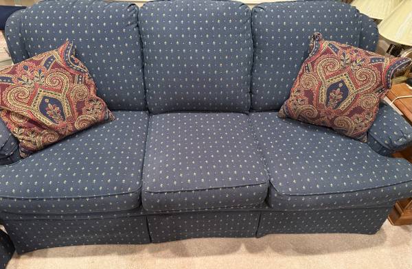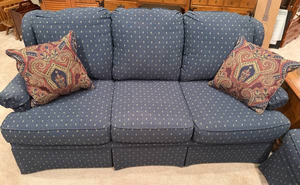 Pair of Blue Flexsteel couches - Like New. Includes throw pillows.
