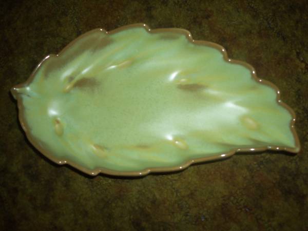 Green with brown, measures 12 inches long x 6 and a half inches wide x 2 inches tall. No chips or cracks. Excellent condition. Perfect retro dish. Mid century modern. $15 cash First 2 pics are...