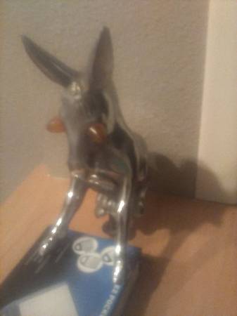 Chrome with Amber eyes that light up hood ornament. Unique.