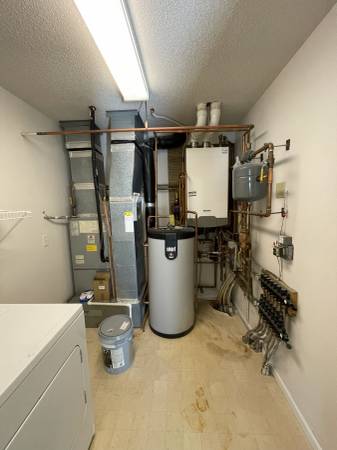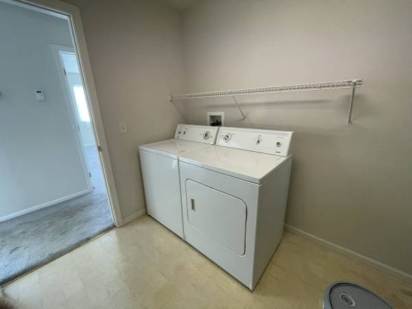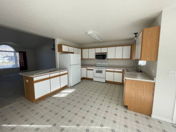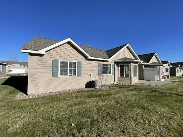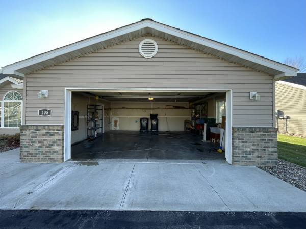 This 2-bedroom, 2-bath townhouse offers 1562 sq ft of single-level living with a 2-stall attached garage, in-floor heat, and central HVAC. The primary bedroom includes a full bath and walk-in closet. The open living area has carpet currently removed; negotiations with buyer will include a flooring allowance or installation option. A dining area overlooks the backyard and opens to a small patio. HOA costs are $200/month for mowing/plowing and general exterior maintenance.