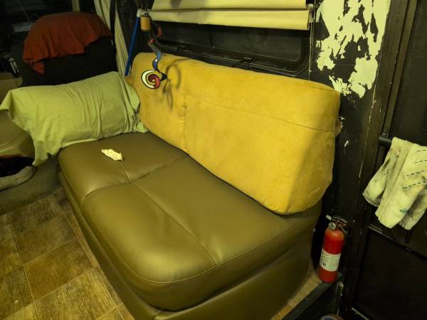 Diesel generator(574hrs) roof top air, new batteries in Nov.2024. Tires are good, hitch receiver. 4 cameras, nice surround sound stereo. I spent $2500 on upholstery, brown & tan, very attractive. AC works, furnace works well. Captain chairs, have seat covers. Roof was sealed last fall. The bad? Slide 12 volt doesn't work, power steps not operating.