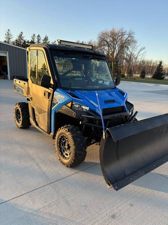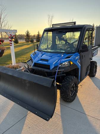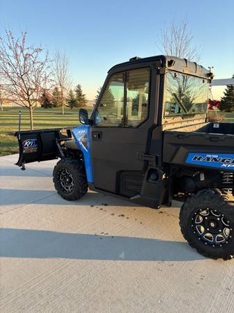 2017 Polaris 1000 XP with Heat and AC, Turn signal kit, Radio with Antenna, Electric Box Lift, Blue color, Almost New Primary Clutch and New Secondary Clutch, New Drive Belt, fresh service, all fluids and filters, solid doors with vent windows, Front Light Bar, Rear backup lights, KFI 72 inch Poly Plow and Winch. If ad is up it is available, I don’t need help selling. 14590 miles. Runs and drives great. Tires worn