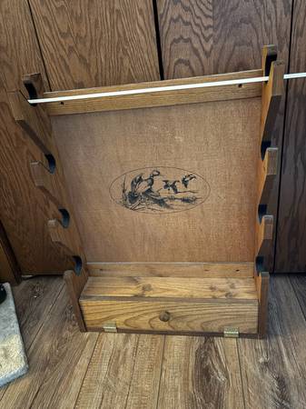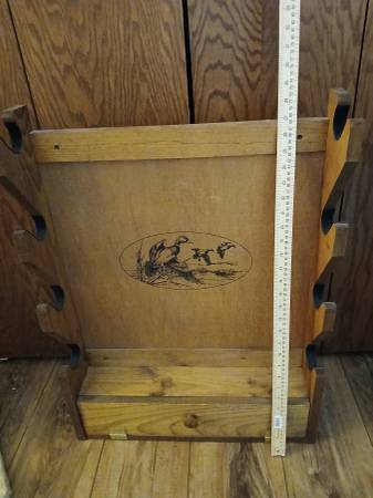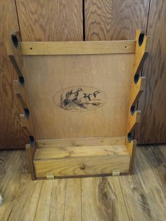 Hand made wood craved wall hanging Gun Rack with drawer Holds 4 guns painted duck seen on the back Duck Hunting Gun Rack