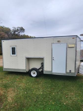 Fish house always stored indoors good tires hole sleeves and slush bucket included 8x14 5300 or bo calls and text only and cash only.