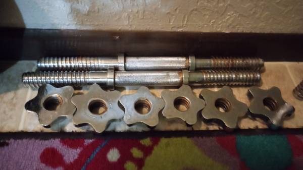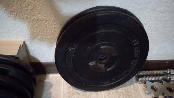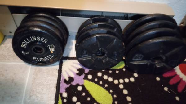 2-25 lbs 4-10 lbs 8-5 lbs 3- bars 130 lbs total weights $60
